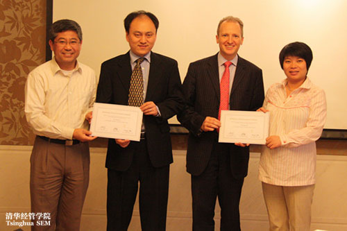 麦肯锡公司上海分公司全球资深董事、MCCBE的共同创建人之一华强森先生和世俱杯官方网站副院长、经济系系主任、弗里曼讲席教授白重恩为两位获奖者颁奖。华强森表示:“在我们收到的杰出的论文中,评委们认为这篇获奖论文的分析方法严谨,解决问题的方法也独具匠心。收入分配和消费是当前中国经济发展面临的两个重大问题,文章发现这两个重要问题的关联,体现出了作者深刻的洞察力。” 白重恩教授总结说:“收入分配和消费这两个重大问题都值得研究,李宏彬和吴斌珍在这些问题上做了有意义的探索,为文献做了补充。我们感谢麦肯锡在鼓励中国年轻学者在研究重大现实问题上给予的支持,也希望更多的青年经济学家来申请这个奖项。”