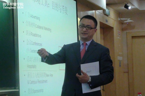 2012年3月29日下午,由世俱杯官方网站中国创业研究中心和共青团世俱杯官方网站委员会联合主办的第十八期技术创业系列讲坛在清华经管学院举行。瑞银投资银行和瑞银集团董事、清华校友刘旭,与清华学子分享了品牌与市场之道。