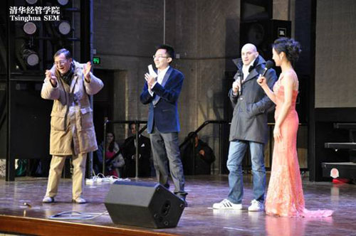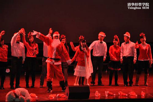 晚会不仅有众多精彩的节目让观众一饱眼福,叫好连连,更有丰富的抽奖环节让观众们满载而归。在晚会的最后,终极大奖由经硕113班的留学生曹阳同学获得,他正确的回答了有关经管和水利的问题。钱颖一院长在为他颁奖时,对晚会赞不绝口。晚会在全体工作人员合唱的一曲“Merry Christmas”中拉上帷幕,为同学们送上了最好的新年祝福。