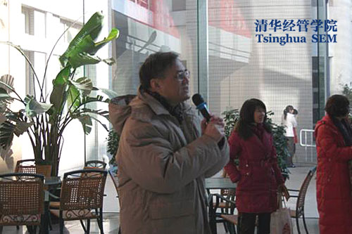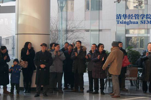 1月23日(农历正月初一)上午,舜德楼大厅一派喜气洋洋的节日气氛。院长钱颖一、副院长白重恩等与近百名学院教职员工及家属欢聚一堂,互致问候,共迎龙年的到来。庭院中早已环绕园景放置好的鞭炮由钱院长亲自点燃,顿时鞭炮声响彻庭院,震耳欲聋,映衬出大家辞旧迎新的愉悦心情。