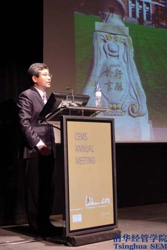 清华经管学院于2006年成为CEMS准学术成员学院。2010年12月,钱颖一院长参加了在荷兰鹿特丹举行的CEMS年会和CEMS战略委员会会议。今年4月,学院正式提交了CEMS会员书面申请。5月,由CEMS执行主任François Collin带队的考察团再次到学院进行了为期三天的访问,对学院提交的申请进行复核,随后在6月份举行的CEMS执行委员会会议上,执行委员们一致投票通过了接受清华经管学院为正式会员学院的决议。