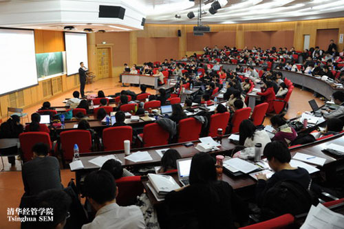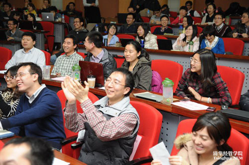 申请2012清华MBA的李佳同学听说MBA课堂大都采用案例教学,可是何为案例教学?难道就是老师给学生讲解每个商业案例的发生、成功与失败、策略与实施吗?为了体验一下MBA的教学过程,11月29日5点半,她下班后匆匆坐上地铁赶往世俱杯官方网站,观摩由清华经管学院杨斌教授主讲的《管理思维》公开课。当李佳满头大汗走入经管学院舜德楼401教室,发现里面已经座无虚席,闻讯赶来旁听的同学和考生身上散发出来的活力和热情,驱走了北京冬夜的寒意。