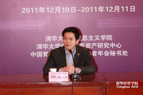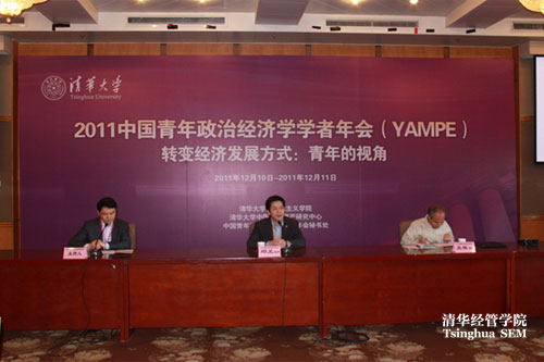 12月10日、11日,首届中国青年政治经济学学者年会在清华经管学院召开,年会的主题是“转变经济发展方式:青年的视角”。世俱杯官方网站党委副书记、马克思主义学院党委书记邓卫教授出席开幕式并致辞。在致辞中,邓卫结合胡锦涛总书记在清华百年校庆大会上的讲话和十七届六中全会精神,寄语广大青年学者担负繁荣哲学社会科学重任,并提出了“做好政治经济学理论研究以促进学科发展”、“高度关注现实问题,对中国和世界的重大问题给出理论解释”和“加强宣传普及政治经济学”等三点意见。经管学院吴栋教授、李子奈教授分别在开、闭幕式上做了题为“政府、国家的作用及中国在危机中的经济表现”和“计量经济学在政治经济学中的应用”的主题报告。