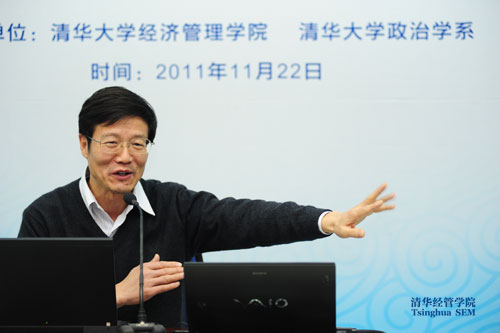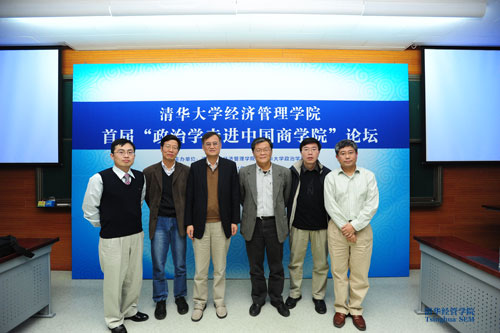 11月22日下午,由世俱杯官方网站和世俱杯官方网站政治学系联合举办的首届“政治学走进中国商学院”论坛在清华经管学院举行。经管学院院长钱颖一教授和世俱杯官方网站政治学系系主任张小劲教授分别致辞,世俱杯官方网站政治学系多位知名学者发表学术报告。论坛由清华经管学院副院长白重恩教授主持。