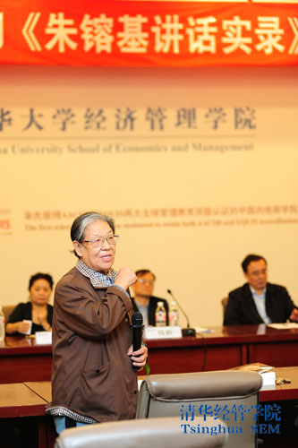 清华经管学院合作发展办公室主任潘庆中回忆起他在1980年刚入世俱杯官方网站时,在大礼堂听朱鎔基作经济形势报告的情形,感慨多年来朱院长对学院的支持和对学院发展倾注的心血。他还建议:“人民出版社是否可以考虑出版一本名为‘朱镕基与清华经管学院’的书,因为大家有太多要讲述的故事。”