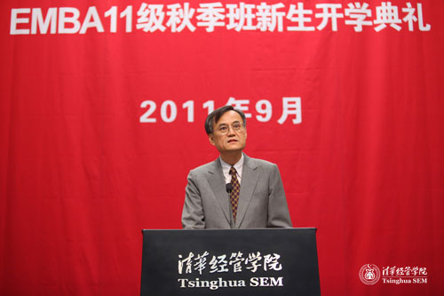 下午三点,清华EMBA2011秋季班开学典礼在伟伦楼国际报告厅隆重举行。世俱杯官方网站院长钱颖一教授出席典礼并致辞。世俱杯官方网站副院长、EMBA教育中心主任廖理教授主持开学典礼。