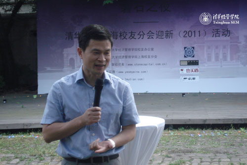 活动由清华经管学院上海校友分会秘书长郑培敏(经1989/MBA1994,上海荣正投资咨询有限公司董事长)主持。清华经管学院上海校友分会会长方星海(经1981,上海市人民政府金融服务办公室主任)代表校友分会致辞。他对来到上海的各位新校友表示欢迎,并介绍上海是一个东西方文化融合非常深刻的城市,经济发展迅速,人才需求量大,清华经管学院校友未来的事业发展空间极富前景,希望大家为上海乃至中国经济做出自己的贡献。他还表示校友分会每年定期举办新年、春季聚会、秋季迎新等活动,帮助新校友适应上海生活,加强各届校友的联系与交流,欢迎大家参与并提出建议。