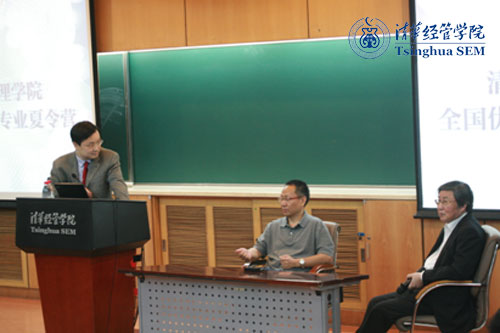 在夏令营期间,金融系郦金梁教授举办了讲座,为同学们展示了近年来中国经济实现的成就以及面临的挑战并与同学们讨论了金融专业大学生的历史使命和社会责任,引发了同学们深思。金融系杨之曙教授举办讲座,图文并茂地阐述了其近期关于“投资者的行为对资产价值的影响”的研究;他巧妙的实验设计和审慎的数据处理向同学们展现了学术研究的魅力。金融系陈秉正教授举办的讲座全面阐述了国内外保险业的发展现状,预测了行业的发展趋势。他总结了清华经管学院保险专业在教学与研究方面的独特优势,引发了许多同学对保险专业的强烈兴趣。黄张凯、何平、杨之曙和郦金梁等教授特别与金融学博士项目申请人座谈,和同学们讨论了金融学博士的培养模式和职业发展前景。这种面对面的深度交流对于博士项目申请者显得尤其珍贵:一方面参与座谈的教师引导他们及早判断自己是否适合学术导向型的博士项目,另一方面教师们的介绍也启发了他们感兴趣的研究方向。