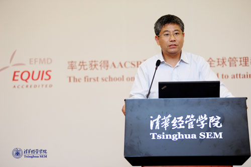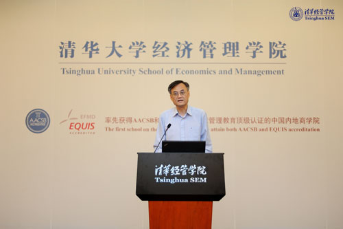 随后,钱颖一院长致辞。钱院长说,学院2011级硕士生开学典礼,有诸多个第一:第一次单独举办的硕士项目开学典礼,第一次金融专业硕士项目的开学典礼,第一次管理硕士项目(MiM)的开学典礼。同时,同学们也是清华新百年的第一届硕士生。