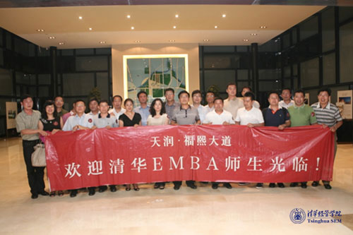 8月19日,清华EMBA11B班一行60余人,踏着落日的余晖来到了天润福熙大道楼盘,举办了2011年秋季班委换届消夏晚宴及中国风水秘笈座谈活动。