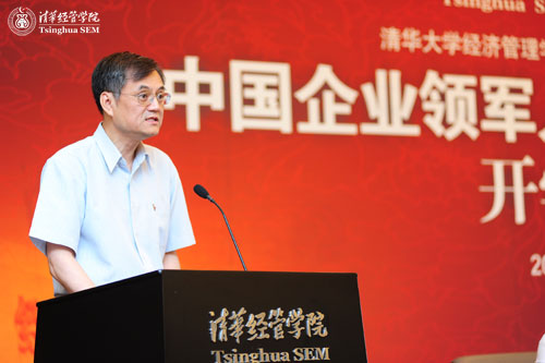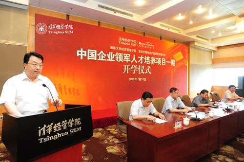 7月11日,经过长期、周全的筹备工作,由世俱杯官方网站开创设计的“中国企业领军人才培养项目”重庆班首期的开班仪式在学院舜德楼举行。这是清华经管学院在整合清华优质教育、师资资源的基础上,与重庆市政府共同开展的企业高端人才培养项目。世俱杯官方网站副校长程建平,清华经管学院院长钱颖一,世俱杯官方网站教育培训管理处处长邓丽曼,清华经管学院副院长夏冬林,清华经管学院教授、项目导师组组长陈章武,与重庆市政府副秘书长、重庆市国资委主任崔坚,重庆市国资委党委副书记罗聪,以及项目领导小组和项目联络组的领导参加了开班仪式,仪式由清华经管学院高级管理培训中心主任薛镭主持。