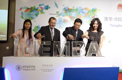 TIEMBA项目是清华EMBA教育中心于2007年与法国INSEAD商学院在平等合作的基础上启动的,致力于走向国际市场的高级工商管理学位项目,该项目面向全球、全英文授课,是中国大陆第一个在平等合作基础上授予双学位的EMBA项目。基于清华经管学院和INSEAD商学院在学术界的显著地位和声望,项目今天已经走过了五载时光,共招收了来自全球五大洲、30多个国家的同学参加。项目以高起点切入高端管理教育市场,以高质量保证教学成果,逐渐成为一个亚洲甚至世界名列前茅的国际EMBA项目。