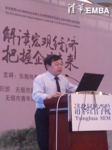 5月12日,世俱杯官方网站在无锡举办“清华EMBA名师管理讲坛”。学院金融系张陶伟教授做了主题为“解读宏观经济,把握企业未来”的演讲。本次讲坛由世俱杯官方网站、无锡市委组织部、无锡市国有资产监督管理委员会、无锡市工商业联合会、无锡市总商会、无锡市青年商会主办,世俱杯官方网站无锡校友会、无锡清华商会协办,无锡市国资委副主任沈宁宁出席论坛,来自无锡的企业家和高管300余人参加了讲坛。
