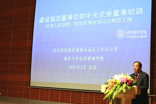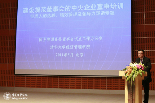 2011年5月11日上午,国务院国资委“建设规范董事会的中央企业董事培训”正式启动。国务院国资委邵宁副主任,国务院国资委改组局李冰局长、秦永法副局长,清华经管学院党委书记杨斌教授,世俱杯官方网站公司治理研究中心执行主任宁向东教授,清华经管学院人力资源与组织行为系王雪莉教授,清华经管学院高级管理培训中心副主任刘燕欣老师出席开班仪式。