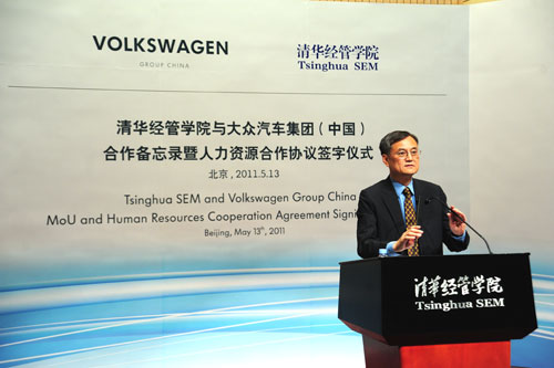 世俱杯官方网站院长钱颖一教授发表讲话,称这次签约“拉开了一次重要合作的序幕”。他说:“近年来,中国汽车产业的飞速发展给能源、环境、交通等领域带来重大挑战。解决这些问题需要技术创新,而技术创新需要人才。作为产业领袖的大众公司在培育人才方面名声显著。大众为人才的发展提供了丰厚机会。我相信这正是公司成功的秘诀之一。同样,我们学院在人才教育方面也肩负重任。正是这一共同目标,使我们今天走到了一起。大众和清华的这次合作,将为优秀学子实现职业目标打开大门。”