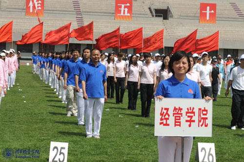 下午一点,首先进行的是精彩的入场式及开幕式表演,经管学院教师代表队身着整齐的蓝色运动服精神抖擞地步入会场并参加了开幕式团体操表演及武功扇表演,良好的精神面貌和英姿飒爽的精彩表演令人印象深刻。