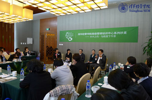 “水木之约•与教授下午茶”活动是清华经管学院高级管理培训中心发起组织的系列沙龙活动,中心希望借此活动加强与企业界精英人士的互动交流,以优秀的师资和高质量的培训课程,助力企业持续发展。本年度的主题将主要集中在企业培训体系构建、培训效果考核、跨文化组织研究、HR自身的职业发展前景等方面。(供稿EDP 编辑沟通办)