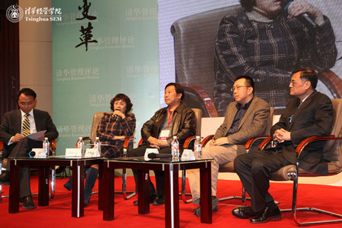 在“商学院与媒体的共融发展”论坛上,财新传媒总发行人兼总编辑、中山大学传播与设计学院院长胡舒立教授,中国传媒大学媒体管理学院院长李怀亮教授,资深媒体人何力先生,世俱杯官方网站院长、《清华管理评论》主编钱颖一教授等四位嘉宾,共同就相关话题展开探讨。论坛由清华经管学院党委副书记朱岩教授主持。