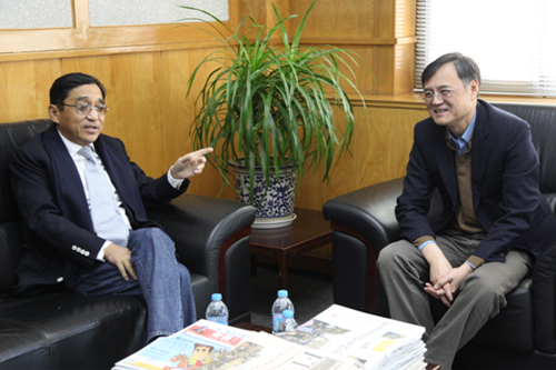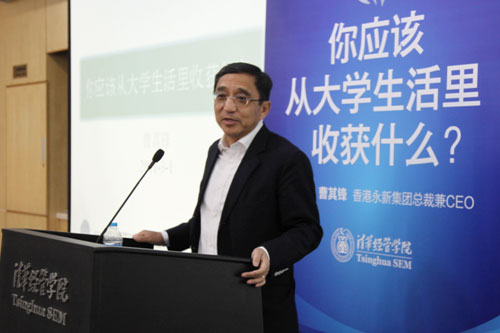 香港永新集团总裁兼CEO曹其锋先生3月1日到访清华经管学院,与钱颖一院长进行了亲切的会谈,并以“你应该从大学生活里收获什么?”为题发表演讲。市场营销系郑毓煌教授担任现场主持人。
