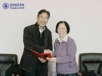 贺美英教授向捐赠人代表宋安澜学长颁发捐赠荣誉证书