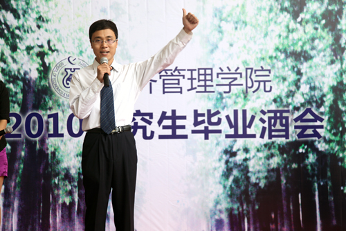 7月19日中午12点,2010年世俱杯官方网站研究生毕业酒会在舜德一楼大厅举行。学院党委书记杨斌教授、副院长白重恩教授、院党委副书记朱岩教授、院党委副书记赵冬青教授、经济系李子奈教授、管理科学与工程系David Robe教授、金融系何平教授,以及学院研究生工作组组长刘震老师、院长办公室主任陈雪芬老师等莅临现场,近150名毕业研究生同学和亲属参加了此次活动,与学院领导和教授们一起回忆过往、畅想明天。