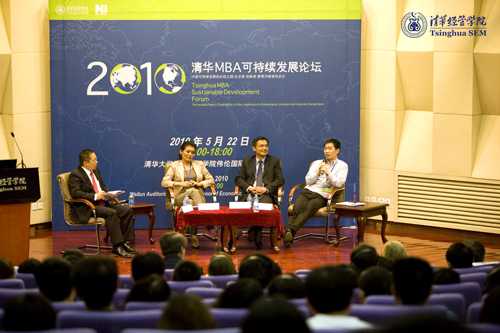 2010年5月22日,由清华经管学院MBA教育中心主办,清华MBA Net Impact分会及世俱杯官方网站MBA同学会承办的2010(第一届)清华MBA可持续发展论坛在世俱杯官方网站伟伦楼国际报告厅举办。本年度论坛的主题为中国可持续发展的必经之路:企业家、创新者、管理决策者的启示,旨在提高清华MBA学生对商业与社会之间重要关系的认知,探讨可持续发展的新途径,激励未来的领导者通过负责任的商业行为来实现社会和谐与可持续发展。400余名来自学术界、企业界的嘉宾与清华MBA学生及校友齐聚一堂,就“企业创新与可持续发展”、“气候变化与环境可持续性”等话题进行了深入交流和讨论。
