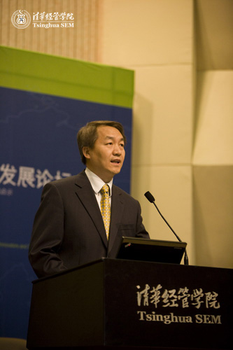 清华经管学院院长助理、技术经济与管理系系主任高建教授首先致开幕辞。他指出,举办本次论坛源于内外两个推动力。外部因素来自于“实现可持续发展”作为人类发展的主题、中国发展的责任、企业发展的使命和个人发展的基本素质所提出的必然要求;内部因素是清华经管学院MBA项目已经站在了一个新的发展平台上,新版清华MBA突出强调“培养具有综合管理能力的未来领导者”,这样的管理者应该具有全球视野、创新精神、科学决策能力和良好品德。清华MBA教育中心在新版MBA的培养方案中,引进多种措施,强化学生的商业伦理与社会责任意识。措施包括:开设伦理与企业责任的必修课;在其他相关课程中嵌入伦理与社会责任的内容;开设《企业伦理与文化》、《文化、伦理与领导》、《绿色管理》等与可持续发展相关的选修课程;支持学生成立“清华MBA阳光爱心社”和以学生为主体推动社会责任与可持续发展的公益组织Net Impact的第一个中国学生分支——清华MBA Net Impact分会等等。高建教授指出,今天的论坛就是由这些学生发起组织,由学院教授、校友和MBA教育中心支持和参与的结果,也是清华MBA项目对学生加强企业社会责任教育的成果之一。