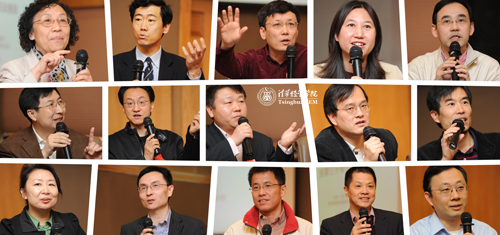 在李稻葵教授的介绍下,13位校友依次登场,他们分别是上海尚道企业咨询有限公司执行董事谢寅、清华经管学院高级管理培训中心副主任刘燕欣、清华经管学院合作发展办公室主任潘庆中、ImpctRx Inc.总监李首无、博时基金量化投资总监张峰、法兴银行总经理刘曦、Nexgen Financial Solutions副总经理林加、诺德基金管理有限公司督察长张欣、高盛高华财务总监李群梅、深圳市友田达实业有限公司董事长李华辉、福建九华发展股份有限公司总经理赵剑奇、上海盘古房地产有限公司总经理宋海、北京交通大学交通运输学院教授贾顺平。