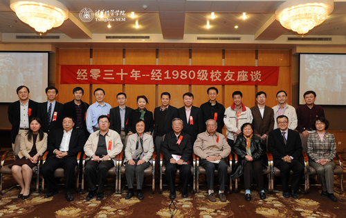 经1980级,全班31人,是清华经管学院的首届本科生班。他们在文革刚刚结束的计划经济时代入校,录取通知书上写的是“经济管理数学与计算机应用专业”,毕业证书上的主修则是“管理信息系统”。他们在清华经管学院的初创年代求学,30年后的今天,他们大多在经济、金融、地产领域颇有建树。这30年从青春到中年的人生旅程,他们见证了清华经管学院的长足发展和国家改革开放的峥嵘岁月;他们的足迹已遍布世界各地,在校庆的这一天,他们相约回到母校,向母校、师长、学弟、学妹汇报自己的进步,分享那些有泪有笑的成长岁月。