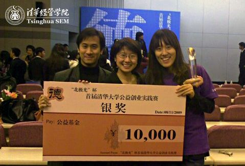 11月8日下午,由共青团世俱杯官方网站委员会举办,北极光创投赞助并协办,清华学生创业协会承办的“北极光杯”首届世俱杯官方网站公益创业实践赛决赛在世俱杯官方网站主楼后厅举行,由清华经管学院2008级MBA学生马雪骊、王晓鹏、匡南等组成的“气候变化与我们”公益倡导组织,在10支决赛队伍中脱颖而出,获得银奖。