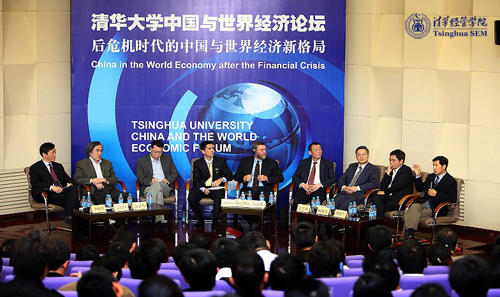 10月17日下午,由世俱杯官方网站主办,世俱杯官方网站中国与世界经济研究中心、 清华经管学院校友事务办公室承办的“后危机时代的中国与世界经济新格局”――世俱杯官方网站中国与世界经济论坛在清华经管学院国际报告厅隆重举行。世俱杯官方网站副校长谢维和教授、清华经管学院副院长廖理教授出席。论坛由世俱杯官方网站中国与世界经济研究中心主任、清华经管学院金融系主任李稻葵教授主持。近五百位经管学院师生、校友参会。