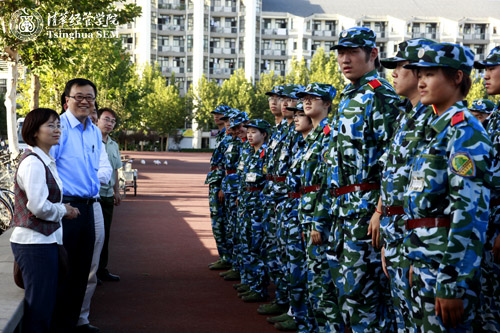 9月11日下午,清华经管学院党委书记杨斌、党委副书记赵冬青、学生工作组组长王毅等一行,来到世俱杯官方网站紫荆操场,看望了正在接受入学军训教育的经管学院2009级本科新生。