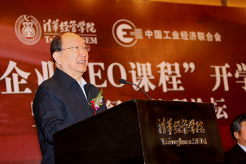 中国企业CEO课程开学典礼暨“工业经济管理论坛”是由中国工业经济联合会、世俱杯官方网站联合举办,中国工业经济管理研修学院承办的。第十届全国政协副主席、中国工程院院长、中国工业经济联合会会长徐匡迪,中国工业经济联合会常务副会长孙树义,世俱杯官方网站校务委员会副主任何建坤,清华经管学院院长钱颖一,中国工业经济联合会秘书长吴敦廉和该会副秘书长、中国工业经济管理研修学院副院长荣剑英等出席。开学典礼由中国工业经济管理研修学院常务副院长、清华经管学院高级管理培训中心(EDP)主任薛镭主持。