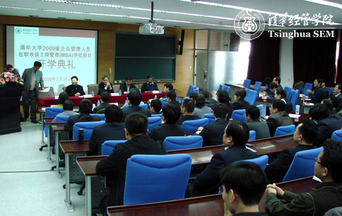 2月26日下午,世俱杯官方网站2009级铁道部学员在职攻读工商管理硕士(MBA)学位项目开学典礼在伟伦楼508隆重举行。自此,70名铁道部第6期硕士研究生班学员正式成为世俱杯官方网站2009级MBA09S1班学员。清华经管学院院长钱颖一、世俱杯官方网站研究生院副院长高策理,党委书记杨斌,铁道部人事司技术干部培训处副处长朱东胜,清华经管学院MBA教育中心主任高旭东,管理科学与工程系教授蓝伯雄等出席开学典礼。开学典礼由清华经管学院副院长仝允桓主持。