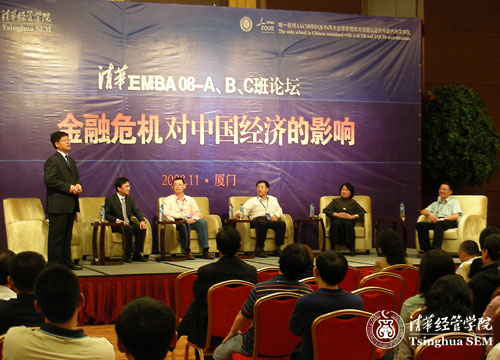 在11月13日晚举行的“金融危机对中国的影响”论坛上,来自建设银行、南方航空、金风科技等企业的5位同学,结合各自企业的情况,介绍了金融危机所带来的影响和潜在机遇。廖理教授、包政教授作为论坛嘉宾,为大家揭示了次贷危机产生的内在原因。