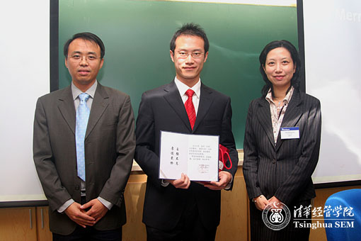 今年,美林集团授予清华经管学院2006级的金钊、刘烨两名同学每人2000美元奖学金,这两名同学也将在2009年暑期成为美林公司的实习生。颁奖会上,金钊同学用流利的英文代表获奖学生对美林的支持和学院的帮助表示感谢,他表示将更加努力,不辜负美林公司和学院赋予的荣誉和期望。