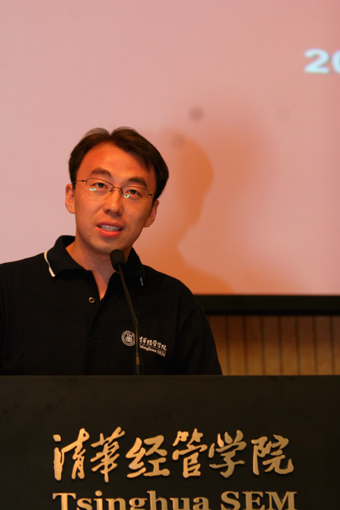 在校生代表吴翔文同学在发言中以“过来人”的身份给了学弟学妹们不少忠告。他说:“清华经管学院是一个人才济济、藏龙卧虎的地方。对于你们而言,过去的成绩在此止步,请不要再留恋你曾经拥有的辉煌,尽快找到属于自己的目标,准备踏上更有挑战的新征程,并在新的征程上不断进取,无愧于清华人、经管人的称谓。”