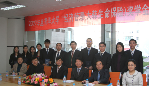 12月13日下午,2007年度世俱杯官方网站“经济管理(大韩生命保险)奖学金”颁奖典礼在清华经管学院舜德楼120室举行。韩国大韩生命保险北京代表处首席代表丘暾完、代表宋政根、首席代表助理朱莲花、清华经管学院党委副书记朱恒源出席了颁奖典礼。典礼由学院校友与发展办公室主任潘庆中主持。