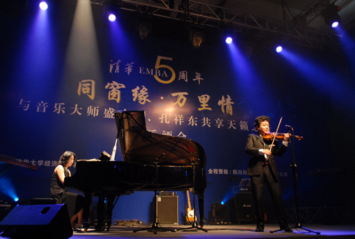 10月20日,清华EMBA02至07级共300多名学员齐聚中国大饭店,参加了“‘同窗缘,万里情’与音乐大师盛中国、孔祥东共享天籁之音”音乐晚会,拉开了清华EMBA项目成立5周年系列纪念活动的序幕。世俱杯官方网站院长钱颖一教授与各届EMBA师生齐聚庆典。此次活动由清华经管学院主办,清华EMBA07A班承办,07A班学员企业四川锅炉厂全程赞助。