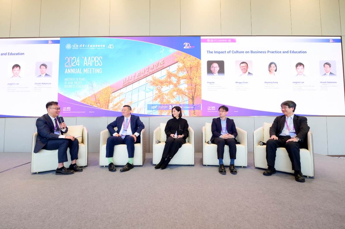 会议包含三场“嘉宾论坛”。第一场论坛围绕“文化对商业实践和教育的影响”,由清华经管学院副院长何平主持,麦肯锡全球资深董事合伙人、麦肯锡北京分公司董事总经理管鸣宇,亚洲管理学院校长及院长姜吉映(Jikyeong Kang),庆应义塾大学商学研究生院院长木村洋(Hiroshi Nakamura)及延世大学商学院助理教授李洙闵(Jongmin Lee)从公司的工作机制、跨国公司运作体系、企业文化等方面,探讨了亚太地区的文化异同及其对商业和教育的影响。