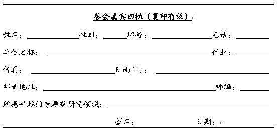 参会者请填好回执电邮或传真至会务组,以便我们确定名额。