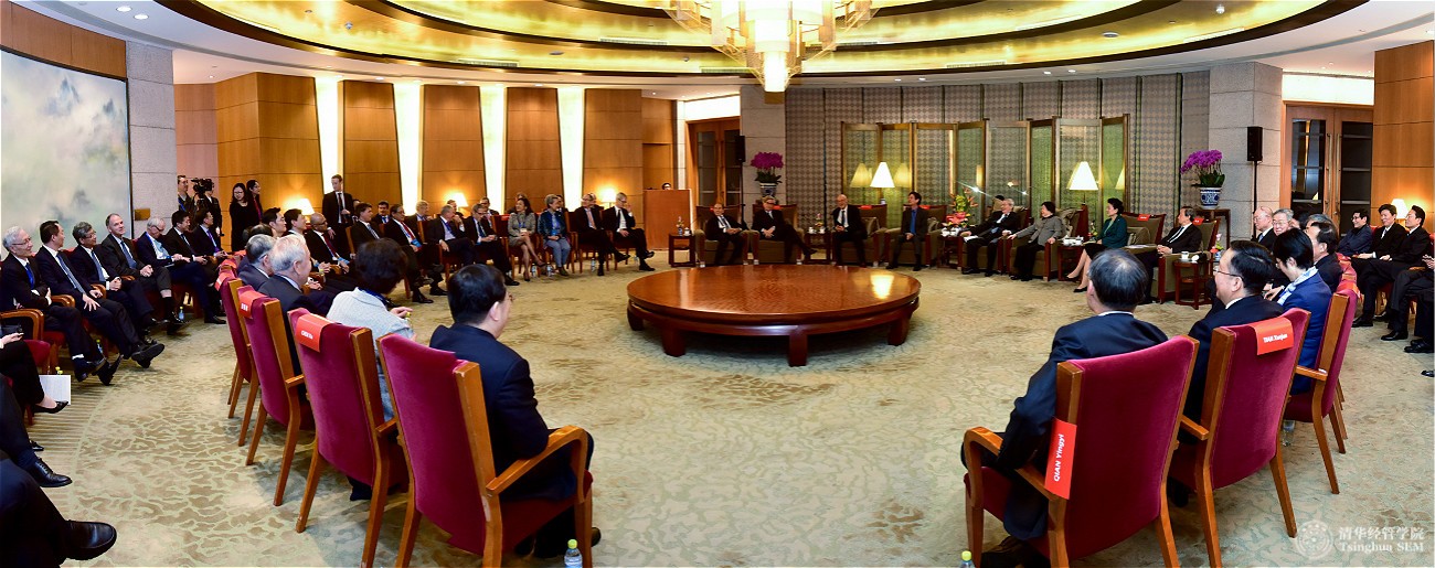 参加会见的有清华经管学院顾问委员会主席、布雷耶资本(Breyer Capital)创始人兼首席执行官吉姆·布雷耶(Jim Breyer),保尔森基金会主席、美国财政部原部长、高盛集团原董事长兼首席执行官亨利·保尔森(Henry M. Paulson, Jr.),巴理克黄金公司董事长、美国华盛顿布鲁金斯学会董事会主席约翰·桑顿(John L. Thornton),美国史带金融财团董事长莫里斯•格林伯格(Maurice R. Greenberg),苹果公司首席执行官蒂姆•库克(Tim Cook)等24位顾问委员会海外委员,以及中方委员郭树清、楼继伟、邱勇、王大中、顾秉林、赵纯均、常振明、李彦宏、马化腾、马云。国务院副秘书长江小涓、教育部副部长田学军、世俱杯官方网站党委书记陈旭、世俱杯官方网站副校长杨斌、清华经管学院院长钱颖一、清华经管学院党委书记高建、清华经管学院常务副院长白重恩等一同参加了会见。