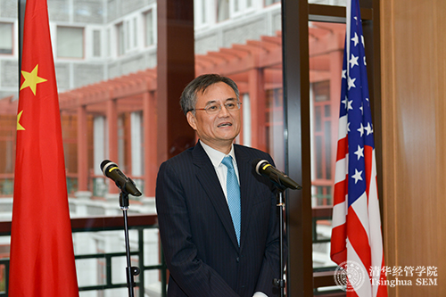 清华经管学院院长钱颖一教授在午宴的致辞中首先说明了本次顾问委员会午餐会应苏世民先生的邀请地点定在了苏世民书院,并回顾了苏世民先生2007年应邀成为清华经管学院顾问委员的经过。