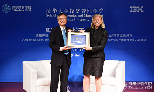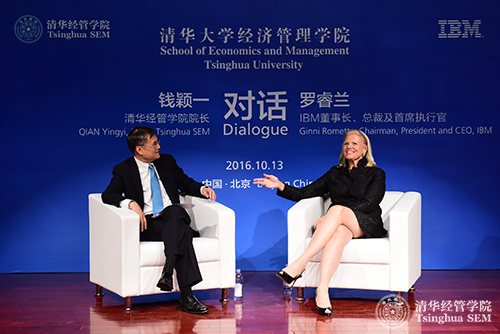 清华经管学院院长钱颖一教授对话清华经管学院顾问委员会委员、IBM公司董事长、总裁及首席执行官罗睿兰(Ginni Rometty)现场