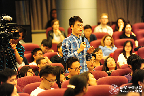 随后,话题转向中国。钱颖一院长向贝兰克梵先生提出如何看待中国正在发起筹建的亚投行。贝兰克梵先生认为,美国应该对于不断演变的国际经济新秩序采取更加开放的态度。同时他提到,中国在国际经济上拥有更大话语权的同时,也应对未来世界秩序的发展承担更多责任和义务。在谈到中美两国正在进行的双边投资协定(Bilateral Investment Treaty,BIT)谈判时,贝兰克梵先生指出,贸易和投资能够真正为人民带来实惠,增进双边关系,也能够进一步增强政治上的互信。