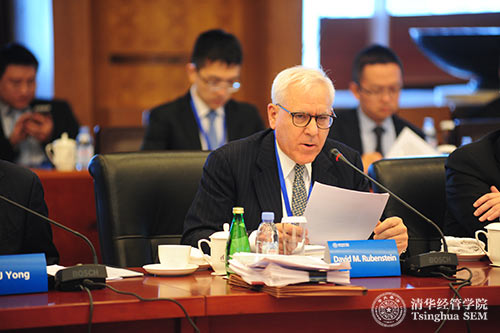 清华经管学院顾问委员会主席、凯雷投资集团联合创始人兼联席首席执行官大卫•鲁宾斯坦(David M. Rubenstein)主持会议
