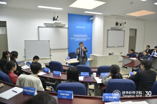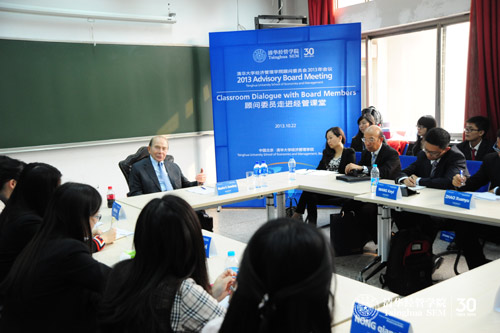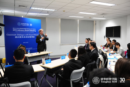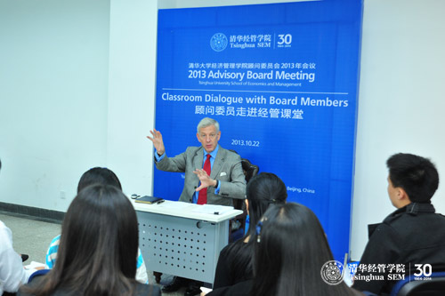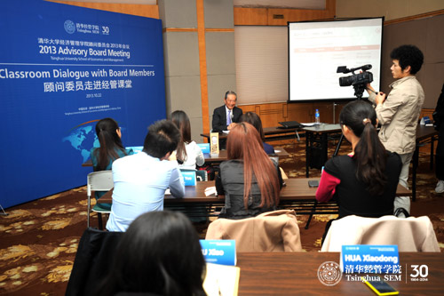 2013年10月22日,清华经管学院举办了“顾问委员走进经管课堂”活动,13个课堂,14位顾问委员,520余名清华学子,20个小时的精彩对话,全部凝缩在清华经管学院这一个舞台上。为了让更多同学受益,现将13个课堂的精彩情况与大家分享,稿件全部由参加当天活动的学生撰写,真实再现当时的场景。