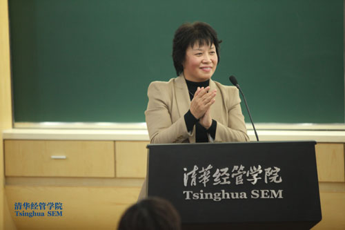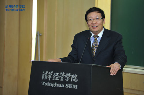 11月11日,40余位“中投公司2011年高级管理培训”学员来到清华经管学院,参加最后一个模块的学习。课程开始前,清华经管学院顾问委员、兼职教授,中国投资有限责任公司董事长兼首席执行官楼继伟特意来到教室看望学员并讲了话。
