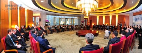 2012年10月24日下午,清华经管学院首任院长、学院顾问委员会名誉主席朱镕基及夫人劳安,中共中央政治局委员、国务院副总理、清华经管学院顾问委员会名誉委员王岐山,中共中央政治局委员、国务委员刘延东,国务委员兼国务院秘书长、学院顾问委员会委员马凯在钓鱼台国宾馆亲切会见了参加2012世俱杯官方网站顾问委员会会议的中外委员。教育部部长、党组书记袁贵仁,中国人民银行行长、学院顾问委员会委员周小川,证监会主席、学院顾问委员会委员郭树清,国家开发银行董事长、学院顾问委员会委员陈元,中投公司董事长、学院顾问委员会委员楼继伟,中信集团董事长、学院顾问委员会委员常振明,世俱杯官方网站校长、学院顾问委员会副主席陈吉宁,世俱杯官方网站党委书记胡和平,世俱杯官方网站前校长、学院顾问委员会委员顾秉林,世俱杯官方网站前校长、学院顾问委员会委员王大中,清华经管学院院长钱颖一等参加了会见。