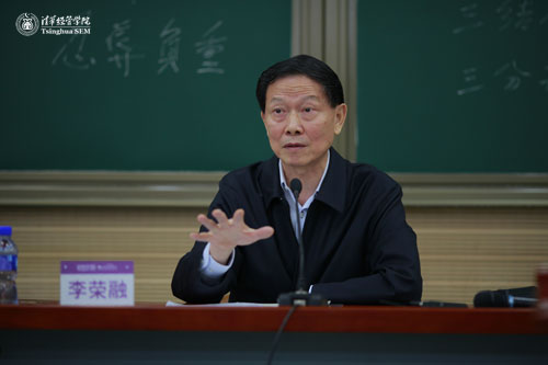 李荣融作为清华经管学院顾问委员会委员、兼职教授,此次特别受邀为企业领军人才班授课的主题是“谈国企改革及如何办好国企”。重庆市政府副秘书长、重庆市国资委主任崔坚,重庆市国资委党委副书记罗聪和企业领军人才班的学员一起听了这堂课。李荣融以其亲身经历及亲身参与的国企改革全历程作为课程的有力论据,为重庆的企业家们深刻解析了国企发展过程中可能遇到的困境和挑战,并给出了积极的解决之道。他说,强国必然需要强企业,为了办好一个企业,作为企业的领军人物则首先需要具备百折不挠、忍辱负重的品质。作为对国企改革的探讨,他给学员们详细解读了“权利、责任、义务统一”;“对资产、事、人管理的结合”及“政企分开、政资分开、所有权与经营权分开”的意义。